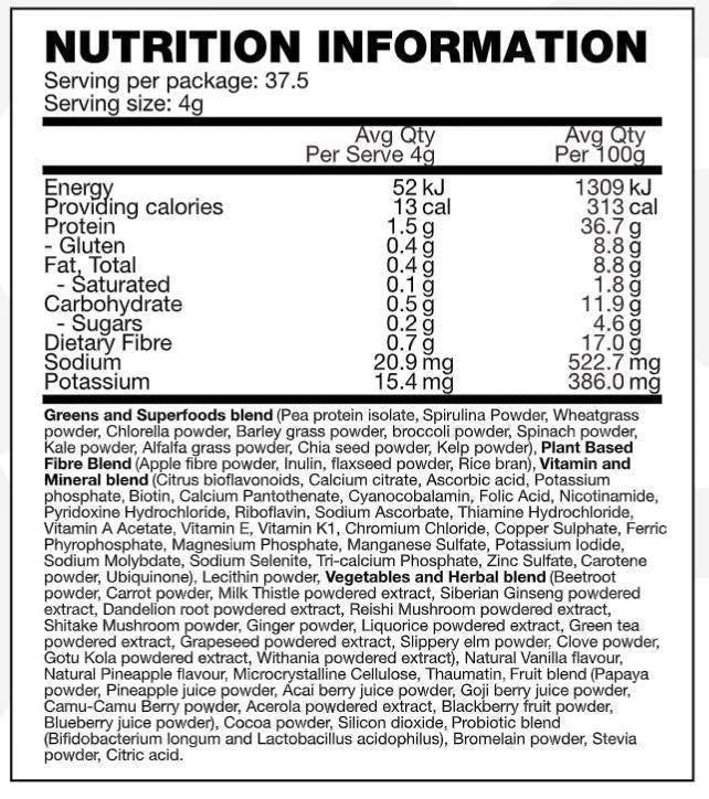- Greens and Superfood Blend – a comprehensive blend of 100% natural superfoods to assist in restoring pH balance in your body and protecting cells against free radical damage caused by every-day lifestyle factors.