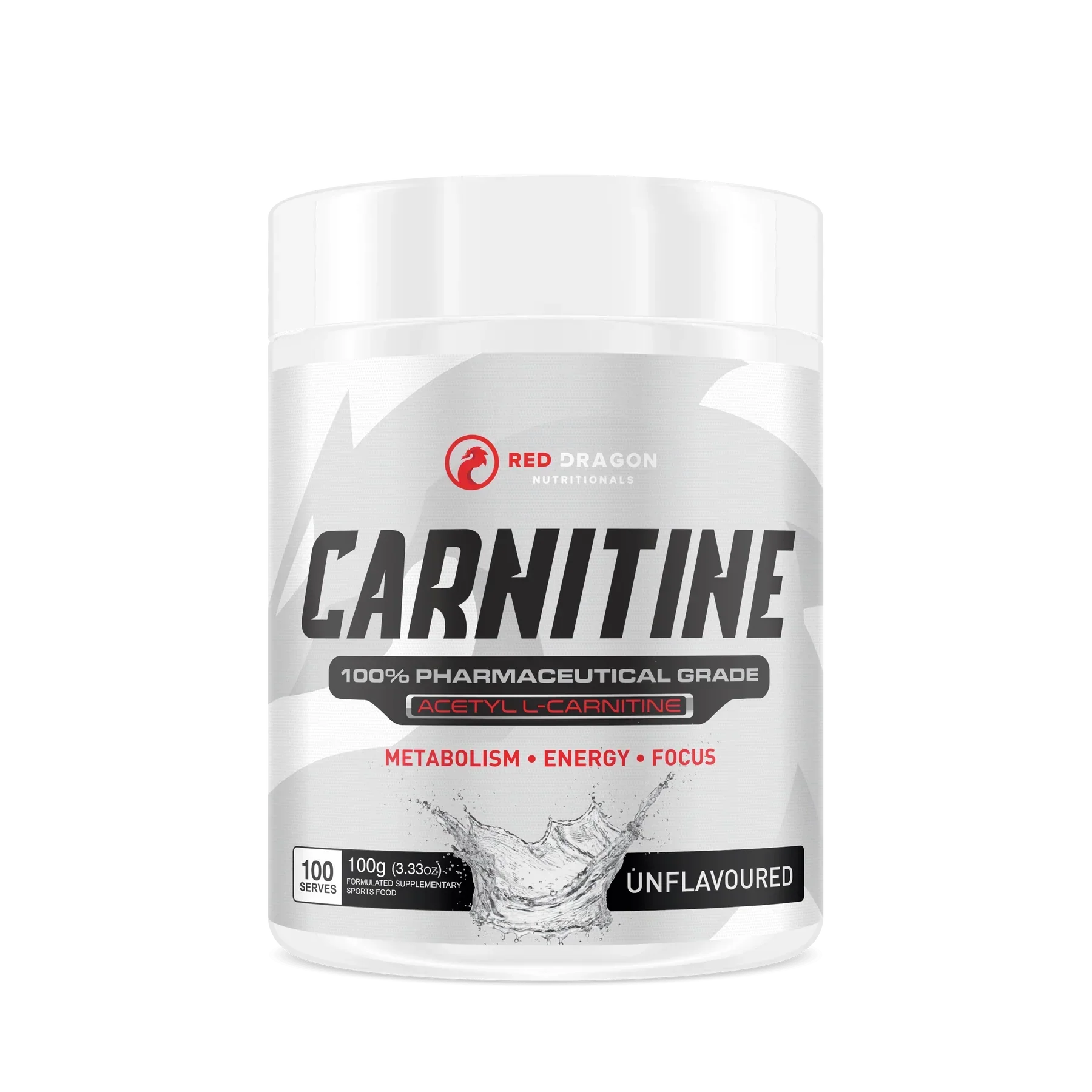 100% Pure L-Carnitine by Red Dragon Nutrition is designed to support your body's metabolism, converting fat into energy. L-Carnitine is one of the most widely used natural nutritional supplements for athletes to assist with recovery, training fatigue and weight loss, it's also known to increases brain function.